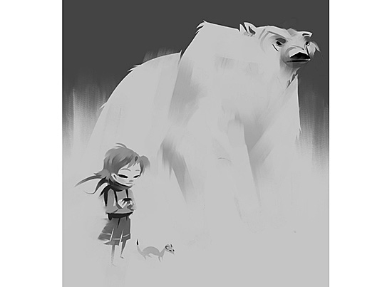 Now using the Chunky Oil Pastel brush, I start painting back over the drawing, adding shadows and texture.