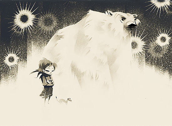 I drew some starbursts in the sky using a blurry brush and some lines I drew in Painter.